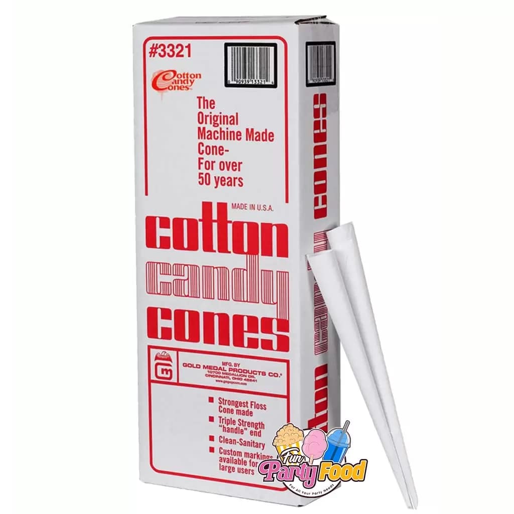 Gold Medal Cotton Candy cones are the strongest cones available. We start with tough fibre Southern Kraft paper and our Triple-wrap at the “handle end” assures you the strongest cone available. Plain Cotton Candy Cones # make a big impact for minimal cost and are an easy and fun way for your customer to enjoy your sweet treats