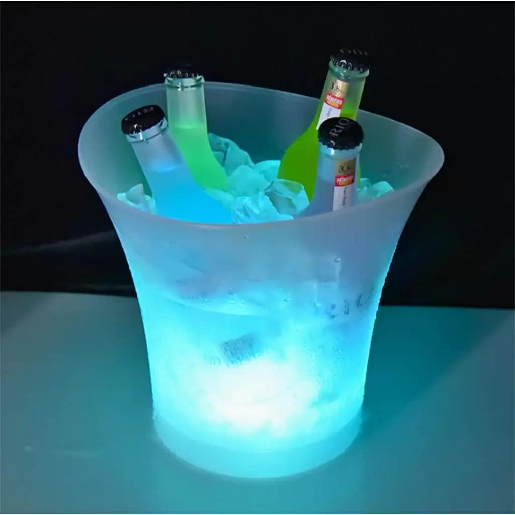 Single push-button on the underside of the Light-Up Ice Bucket turns the bright LED lights on and off