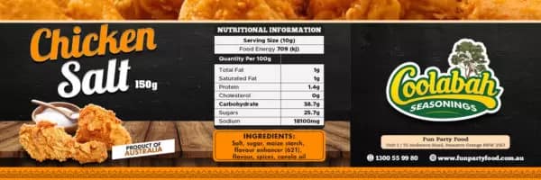 Our famous Chicken Salt is a salt-based savoury seasoning designed to impart a slight chicken flavour to fried potato, wedges and hot chips