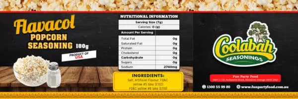 This unique fine salt adds the buttery season & colour needed to produce real theatre style popcorn.