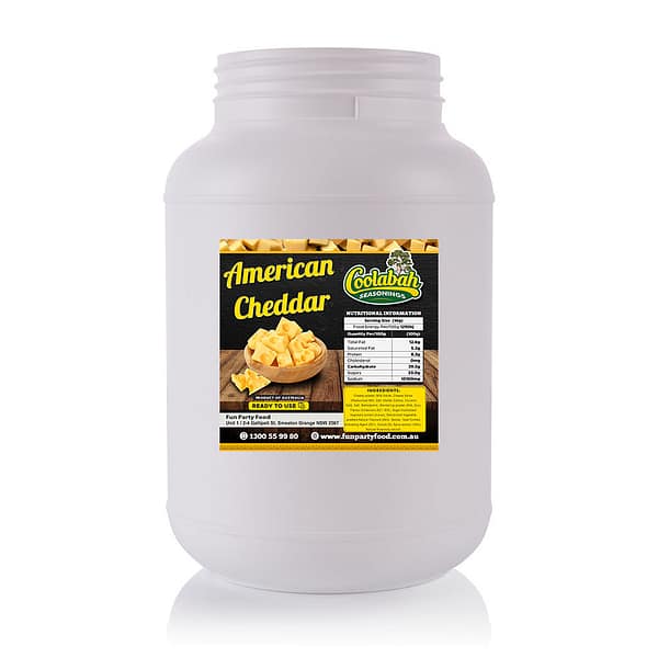 American Cheddar Seasoning is a seasoning blend designed to provide a rich, bold cheese flavour and aroma reminiscent of classic American cheddar cheese. Its fine, free-flowing texture makes it easy to sprinkle over snacks and various dishes. The vibrant yellow-orange colour adds visual appeal, enhancing the overall presentation of the food. This seasoning can be used on popcorn, chips, vegetables, and more, making it a versatile choice for flavouring snacks and enhancing everyday meals. If you have any more questions or need further information about this seasoning, feel free to ask!