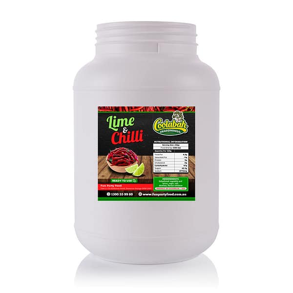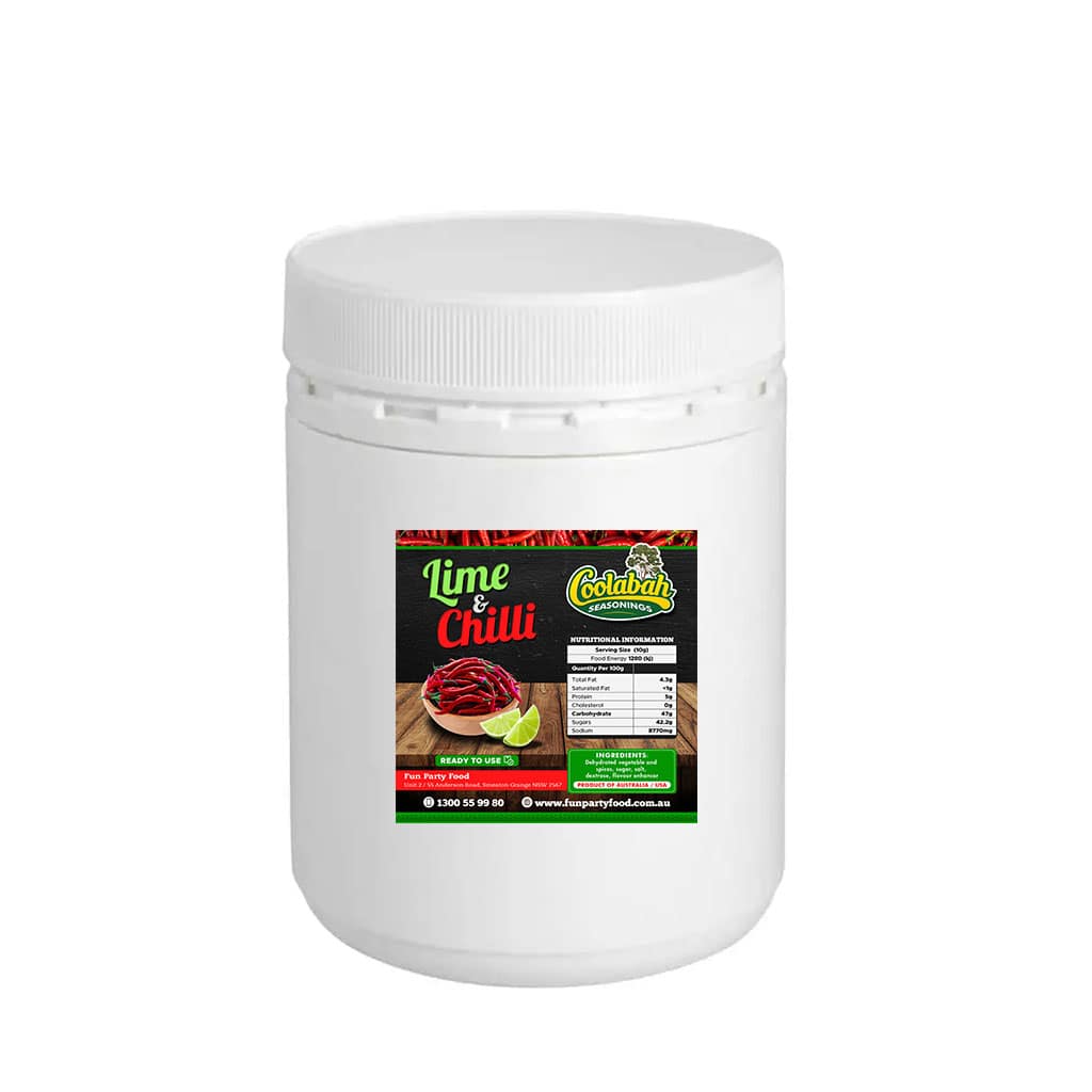Lime & Chilli Seasoning is a free-flowing seasoning blend, reddish in colour, with a bold and zesty lime and chilli flavour. It delivers a balance of tangy citrus notes and spicy heat, making it a versatile addition to a variety of dishes.