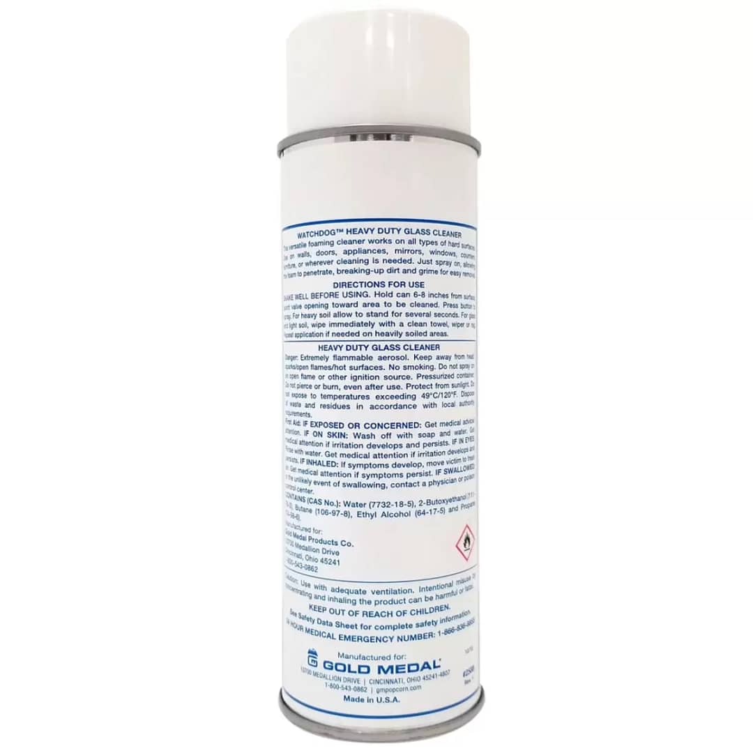Watchdog Heavy Duty Glass Cleaner is the number one brand in glass cleaners for the concession industry! Cleans glass, lexan, plexiglass and other surfaces. Does not contain ammonia, which can damage non-glass, plexiglass and other plastic surfaces. This ammonia-free glass cleaner can be safely used on your popcorn machine, chip warmers and other concession equipment without damaging or fogging your plastic surfaces. Can also be used effectively on formica, chrome, copper, aluminum, brass, steel and more. 19oz aerosol can. Sold individually.