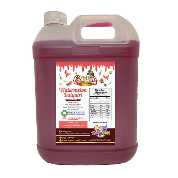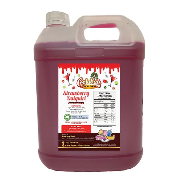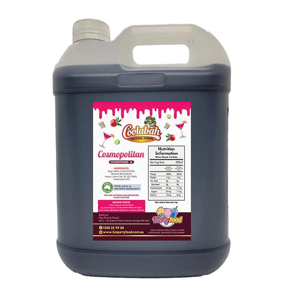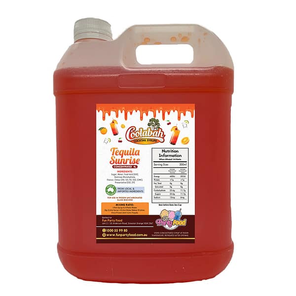 All our Syrups are made using 100% Australian sugar, and we have an extensive range of available with mouth watering cocktail delights like Fruit Tingle, Pina Colada, Margarita, Strawberry Daiquiri, Bahama Mama, Caribbean Cruise, Cosmopolitan, Coyote Ugly, Hurricane Lemon Lime & Bitters, Mango Daiquiri, Midori Illusion, Mojito, Mudslide, Sex On the Beach, Tequila Sunrise, Watermelon Daiquiri.