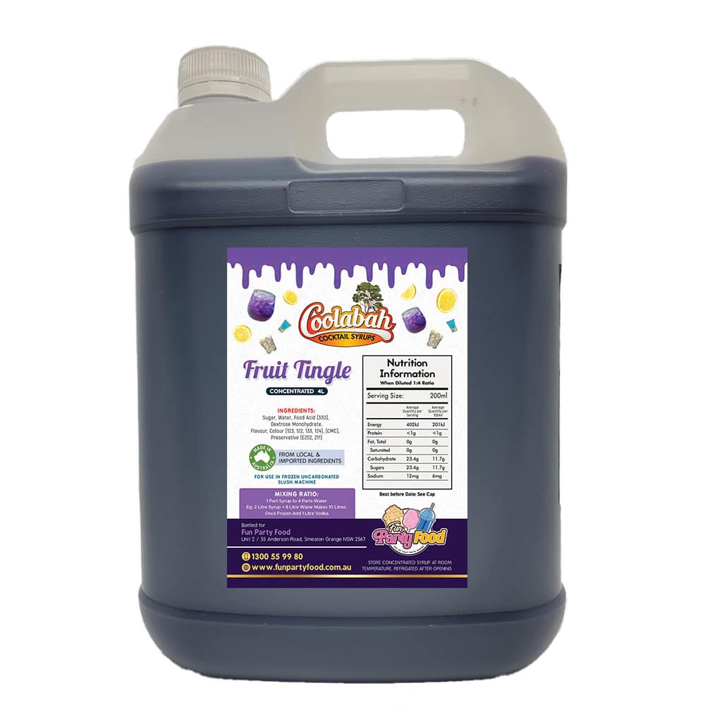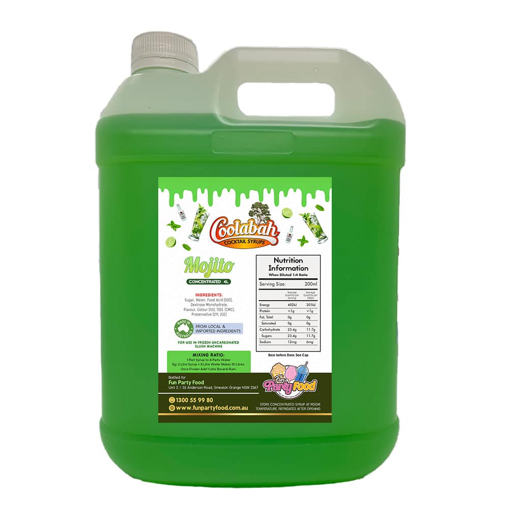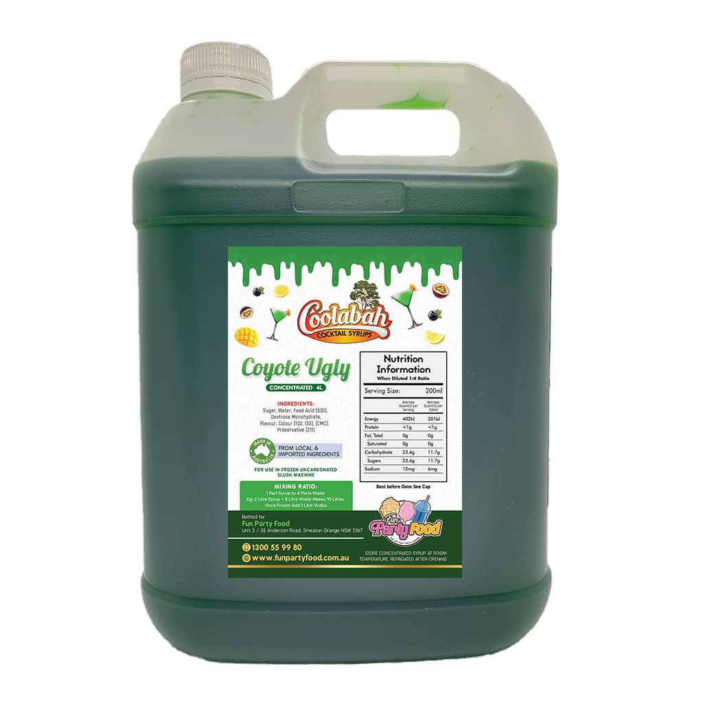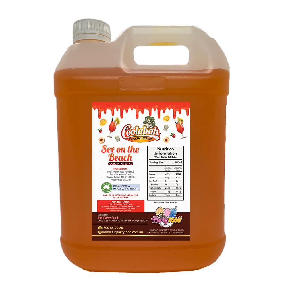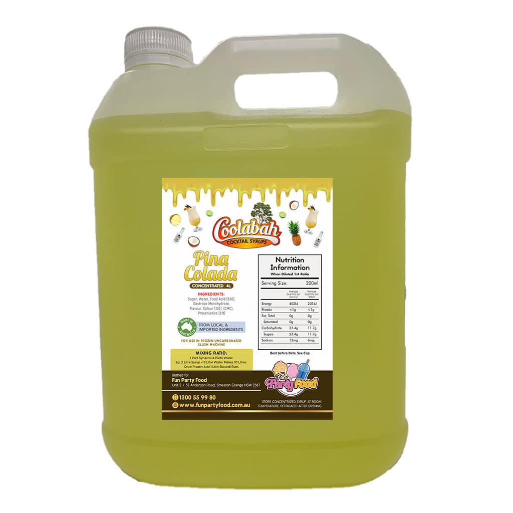 All our Syrups are made using 100% Australian sugar, and we have an extensive range of available with mouth watering cocktail delights like Fruit Tingle, Pina Colada, Margarita, Strawberry Daiquiri, Bahama Mama, Caribbean Cruise, Cosmopolitan, Coyote Ugly, Hurricane Lemon Lime & Bitters, Mango Daiquiri, Midori Illusion, Mojito, Mudslide, Sex On the Beach, Tequila Sunrise, Watermelon Daiquiri.